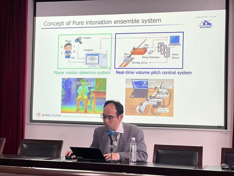 Kazuteru Tobita以《智能机电一体化技术与教育助力智能制造》为主题,介绍了自主移动机器人的自定位估计技术、轮椅转运机器人和移动机器人的精确测量技术。报告还分享了一项基于AI辅助物体检测的抓取机器人制作练习(PBL)教学案例,该案例已在该校课程中实施。